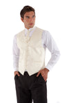 V-neck, 5 buttons, 2 jet pockets, satin back.