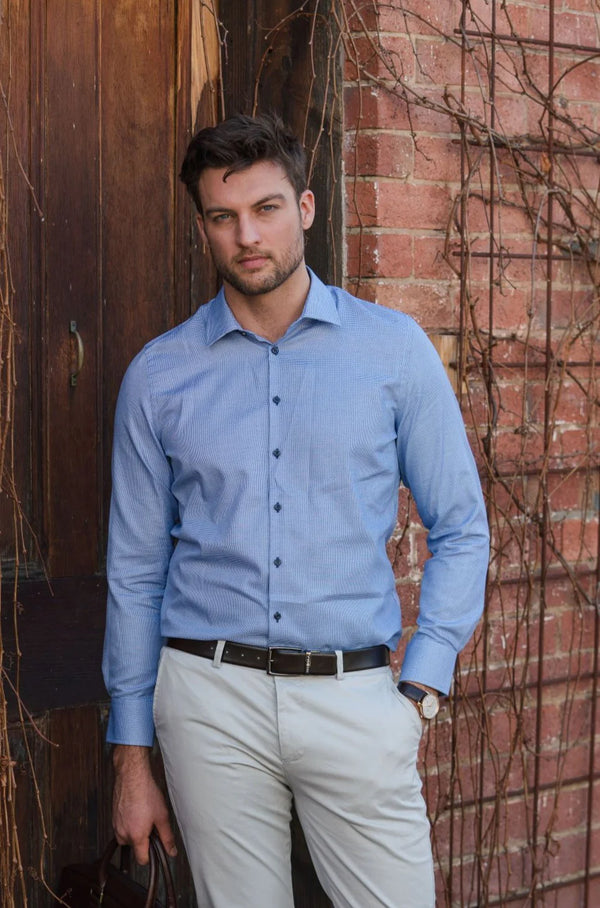Refine your office look with the Jacques Business Shirt by Daniel Hechter. Crafted from a lightweight cotton blend, this shirt features a subtle blue textured weave that adds depth to your professional attire without compromising on comfort. Designed with a modern slim fit, it offers a sharp, tailored silhouette suitable for the Australian climate.