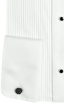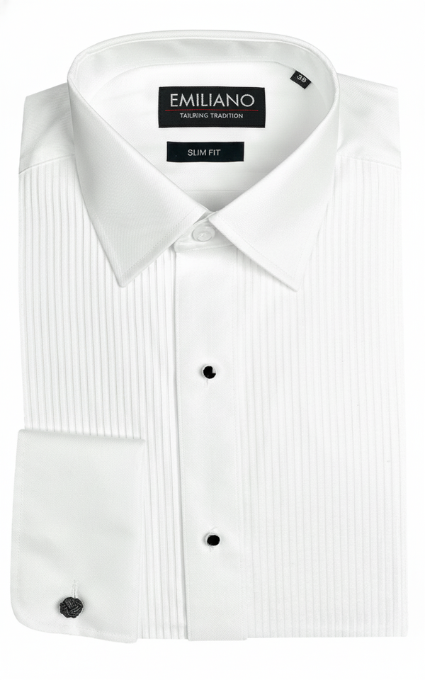 Made from a cotton blend fabric, this slim fit dinner shirt features a pleated frill placket, black stud buttons and a French cuff.