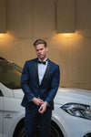 Made from a cotton blend fabric, this slim fit dinner shirt features a pleated frill placket, black stud buttons, wing collar and a french cuff.