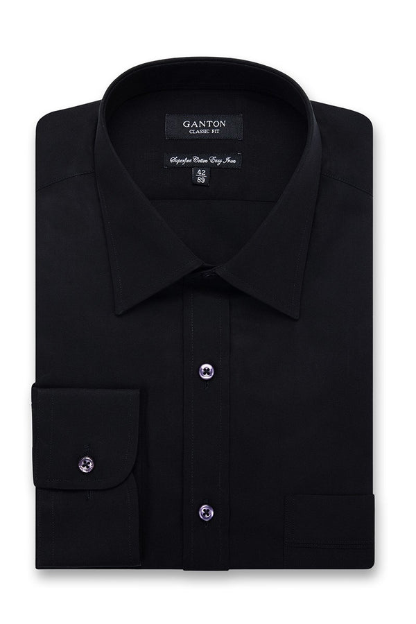 A versatile black shirt tailored to our regular fitting classic fit, this shirt offers ample room for you to move comfortably throughout your day, making it the ultimate choice for various occasions, including business, life events, or everyday casual wear. Crafted from a soft and comfortable 60's superfine cotton fabric, this shirt is both stylish and practical. What sets it apart is its easy-to-iron properties, simplifying your daily routine and ensuring you look sharp effortlessly.