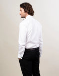 Take your formal attire to the next level with our 100% pure cotton evening dress shirt, complete with elegant French cuffs, as well as a bib front in a customary Marcella weave. Ideal for your next black-tie event, this crisp white shirt sharply contrasts with a black tuxedo, giving your look a sophisticated edge and allowing you to make a grand impression on the big night.