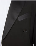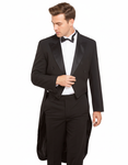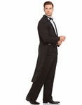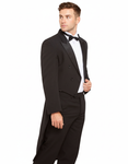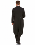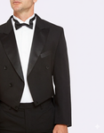 A traditional dinner suit with short front jacket and full tails at back. A welt pocket at the chest, two internal pockets and four buttons at the cuff. Jacket is fully lined.