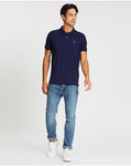 Our model is wearing a size medium polo. He is 189cm (6’2.5”) tall with a 100cm (39”) chest and a 82cm (32”) waist.