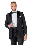 The textured wool fabric of our Trace tuxedo jacket contrasts beautifully with the satin lapels. It's black-tie tailoring at its finest.