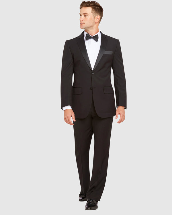 The Kelly Country Giorgio Fiorelli two-button Dinner Suit. This Classic cut suit is a great choice for all your formal occasions. The suit boasts satin lapels including satin highlights on the chest and flap pockets. An elegant addition to your wardrobe for those special events.