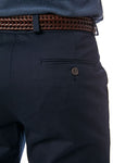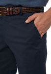 *Features slim fit, button waist with zip fly, mid rise, flat front, two open side pockets, two buttoned back pockets.