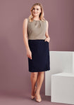 Knife pleats on the front emphasize the skirt’s fluidity, whilst the back split adds comfort and ease of movement.
