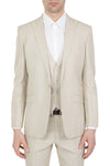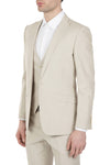 Linen Blend Slim Fit Suit by Uberstone. Neutral Sand colour and lightweight feel give a comfortable and relaxed look.