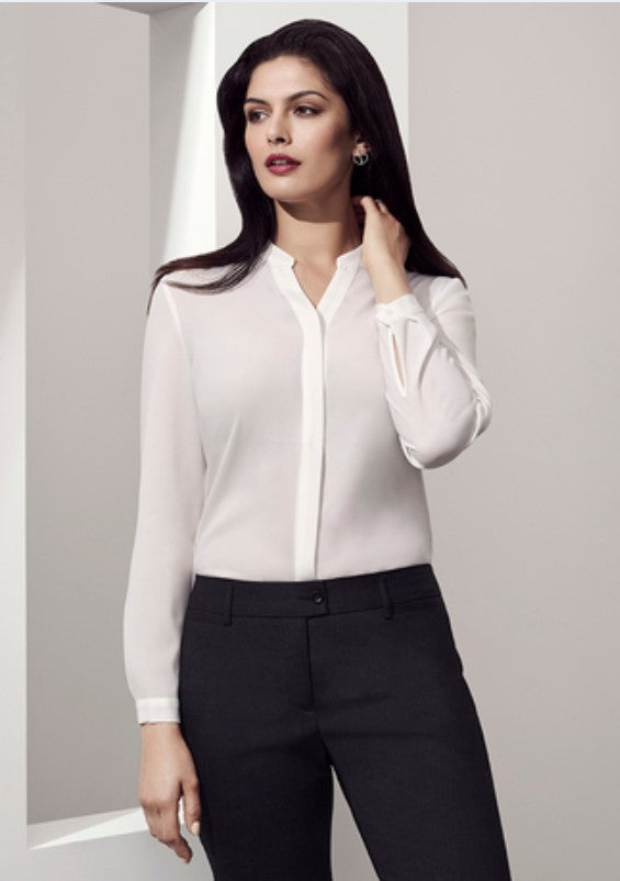 STYLE DETAILS • Easy fit style • Concealed placket • Back inverted pleat featured to provide shape and extra movement • All seams are double turned for quality in and out • Longer back length • Curved front hemline • Long sleeve with button up cuffs